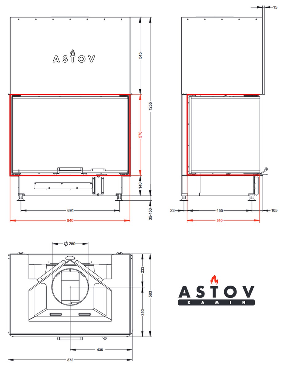 Трехсторонняя каминная топка АСТОВ П3С 8457