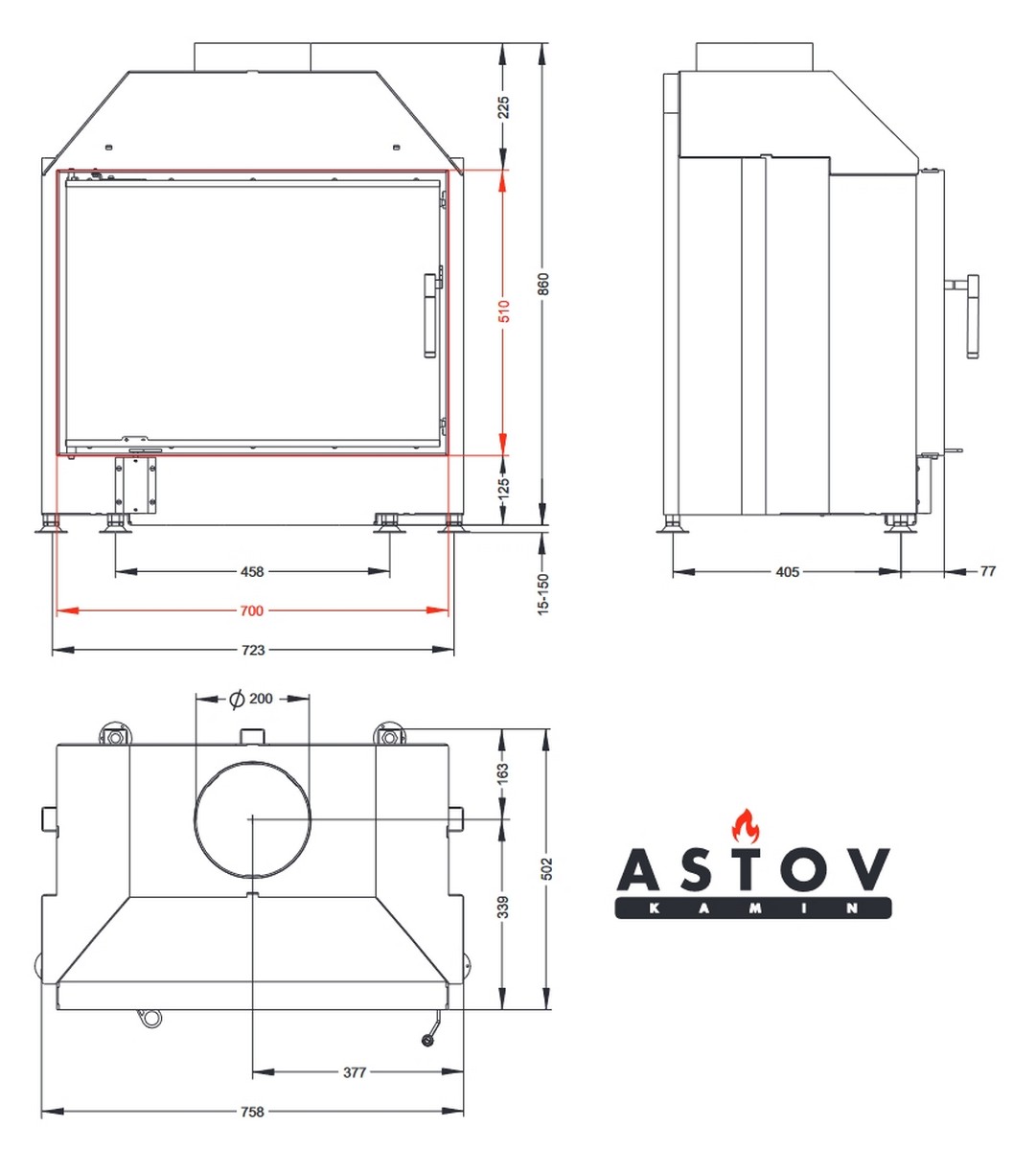 | Диаметр дымохода | 200 мм |