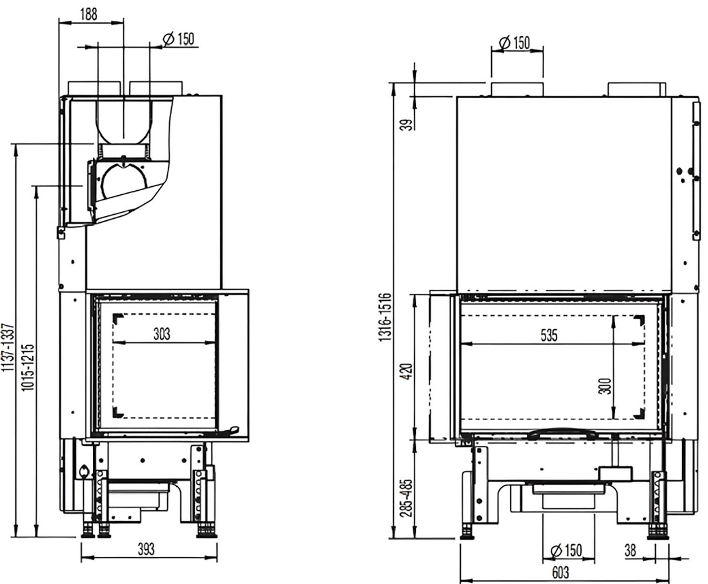 Каминная топка Austroflamm 63x40x42 S 2.0 Left - это идеальное решение для создания уюта и комфорта в вашем доме. Эта угловая вставка с подъемным механизмом представляет собой идеальное сочетание функциональности и стиля. С диаметром дымохода 150 мм, каминная топка Austroflamm обеспечивает превосходное тепловыделение и легко подключается к любому стандартному дымоходу. Двойные стекла эффективно ограничивают тепловое излучение, обеспечивая безопасность и комфорт.