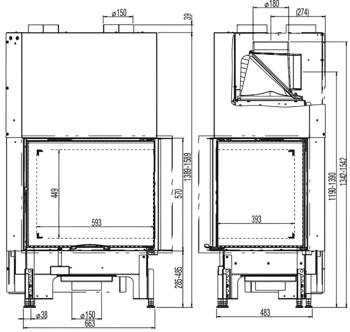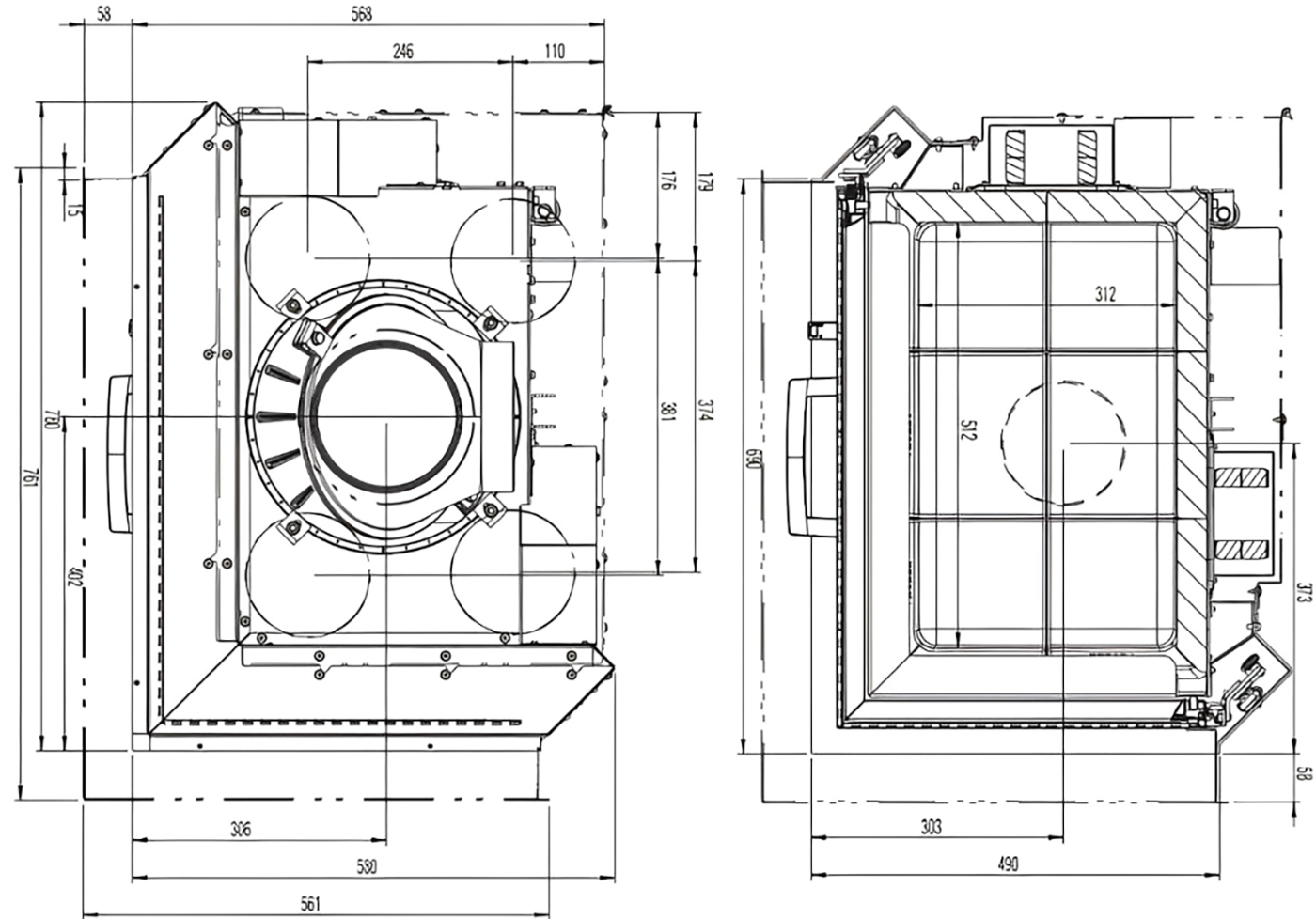 Каминная топка Austroflamm 69x49x57 S 2.0 правая оснащена встроенной системой теплоаккумуляции в виде насадных колец ASM или системой дымовых каналов, обеспечивая высокую отопительную эффективность. Допустимая длина каналов для каждой модели указана в инструкции, что обеспечивает безопасность и эффективность использования. Эта каминная топка имеет допуск для установки в закрытых теплоемких конструкциях типа «гипокауст», что делает ее универсальным и функциональным решением для различных интерьеров. Кроме того, конструкция предусматривает возможность подключения блока автоматического управления процессами горения, обеспечивая максимальный комфорт и удобство в использовании.