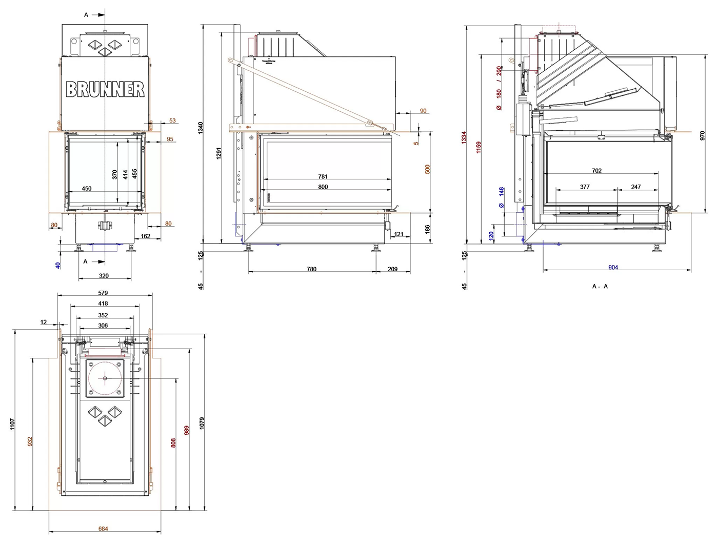 Brunner BKH Panorama 45-80-45-80 серии green - это дровяная трёхсторонняя топка с боковыми стёклами шириной 80 см. Дверца топки с подъёмным механизмом. Топка оснащена монтажной рамкой, которая упрощает отделку каминного короба. Топочная камера футеруется шамотом или чугунными пластинами. Система подового горения с направленной подачей воздуха в центр топочной камеры обеспечивает высокую эффективность и полное сгорание топлива. Топка оснащена патрубком диаметром 150 мм для подключения приточного воздуха, что позволяет создавать комфортный микроклимат в помещении.