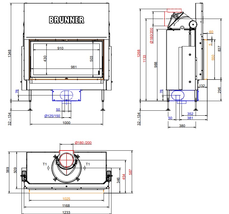 Brunner BKH 5.0 flat 50-98 ST - стальная топка с подъемным механизмом открывания дверцы. Специальный механизм гильотины обеспечивает плавное и бесшумное поднятие дверцы камина вверх.
