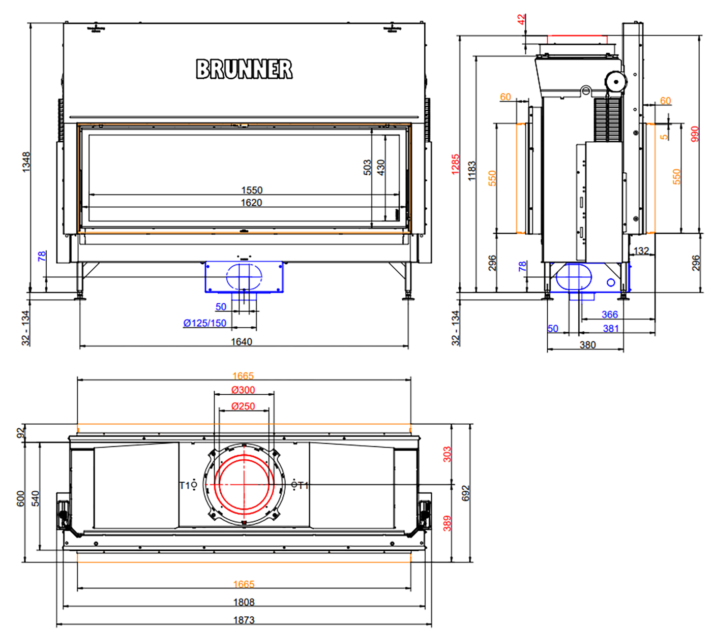 Brunner BKH 5.0 Tunnel 50-162 ST-KT - стальная туннельная топка с подъемным механизмом открывания дверцы с одной стороны и откидным с другой.