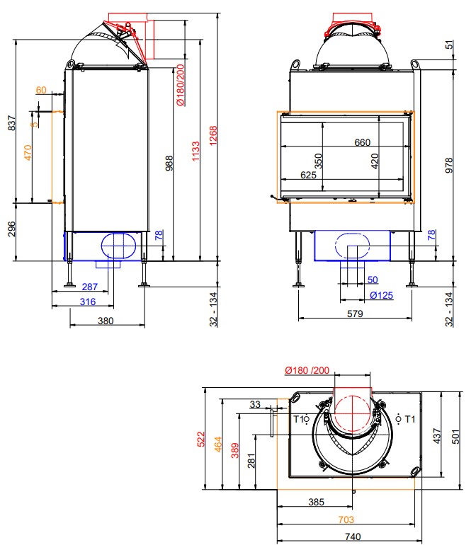 Также на топку можно установить систему автоматического контроля горения EAS (повышает эффективность сжигания дров, контролирует процесс горения, путем автоматической регулировки подачи воздуха в топку).