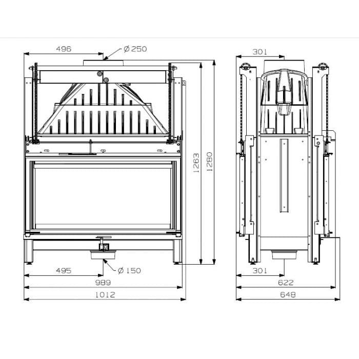 Cheminees Philippe 1001 DF Etanche PR - дровяная топка туннельного типа, изготовленная из огнепрочной стали и высококачественного чугуна.