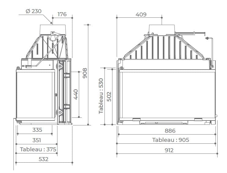 Каминная топка Cheminees Philippe 873-2V SR чертеж: