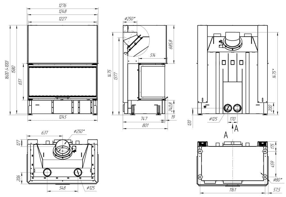 | Диаметр дымохода | 250 мм |