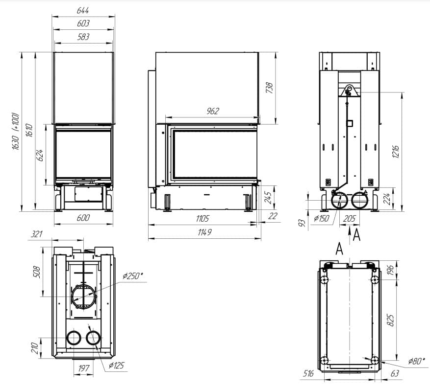 Ребра жесткости по всему корпусу топки и встроенные в дымосборник тепловые каналы позволяют снимать больше тепла и отдавать его в помещение путем конвекции. Высокий дымосборник и пламярассекатель не позволяют дымовым газам попадать в помещение при открывании дверцы.