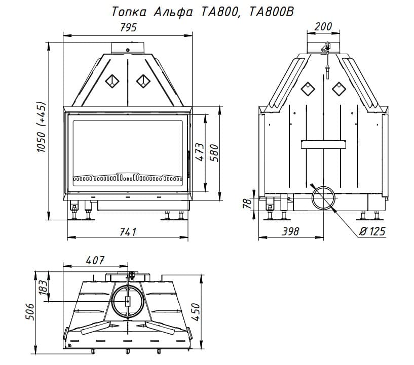 Каминная топка Экокамин Альфа 800 B чертеж: