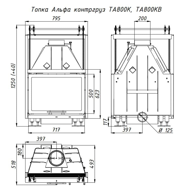 Размеры Альфа 800 KB Ш×В×Г: 795×1250×493 мм.