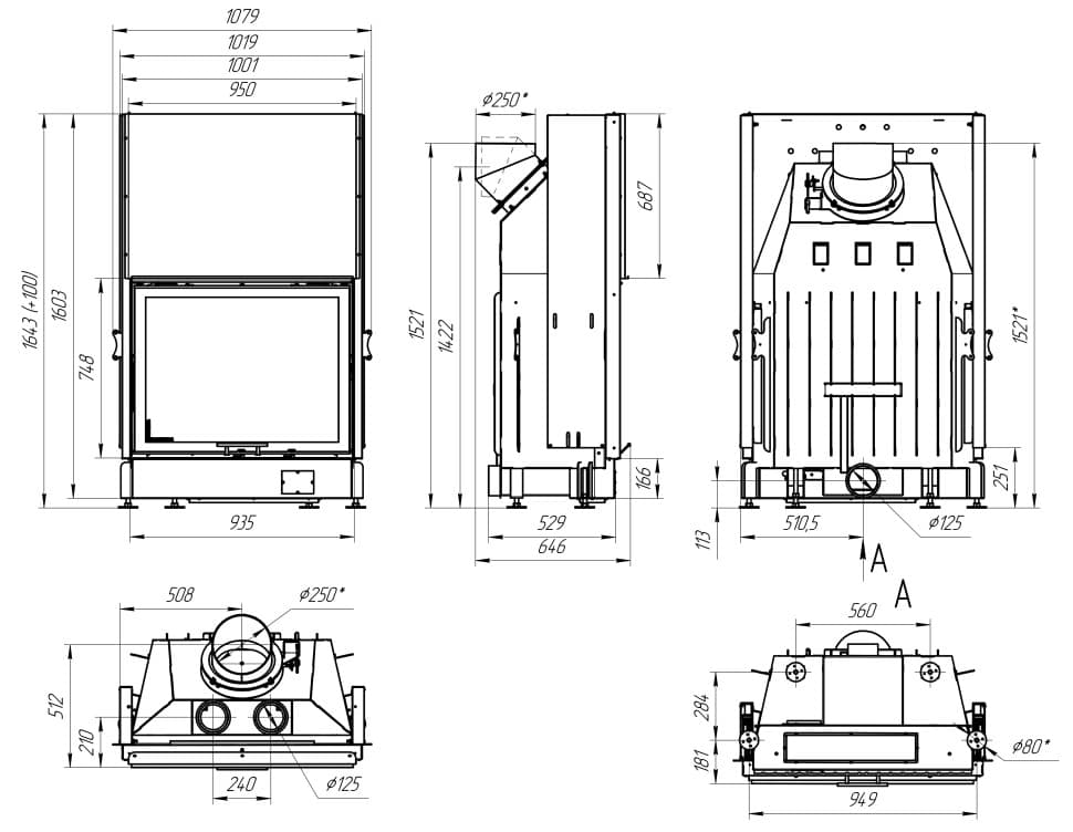 Каминная топка ВЕГА 1000 MP подовое горение принтинг чертеж: