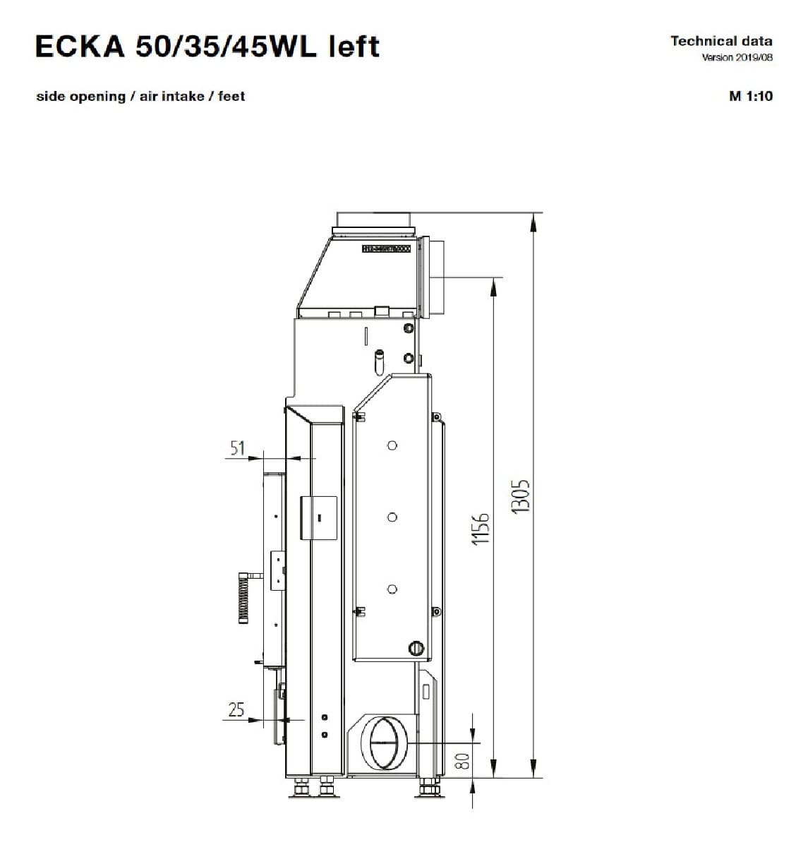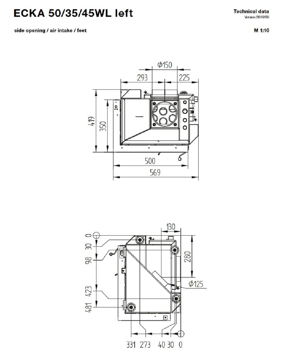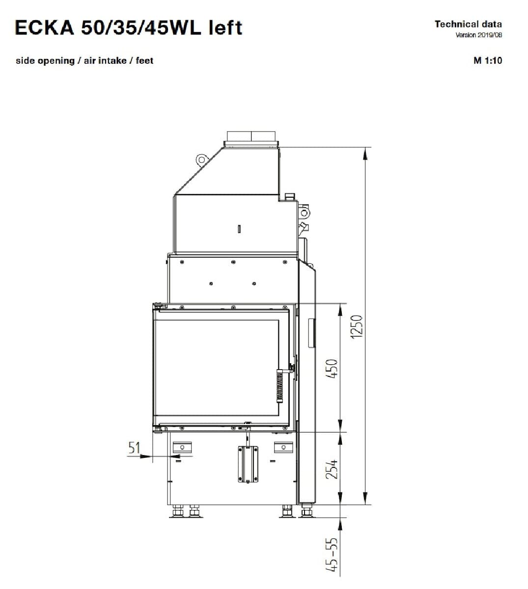 Габаритные размеры Каминная топка ECKA 50/35/45W