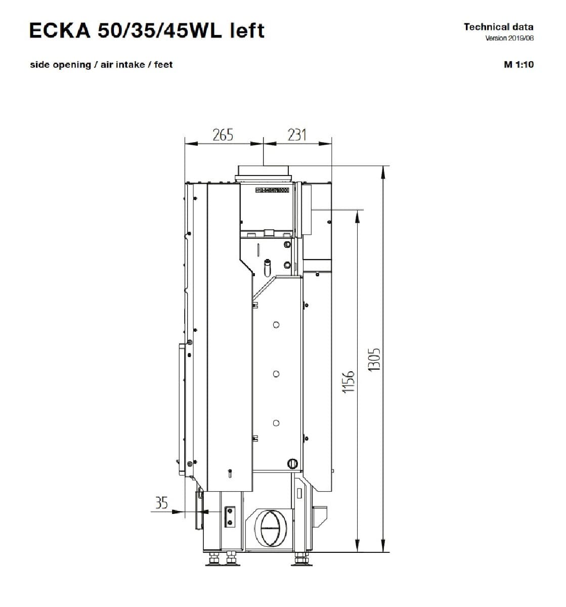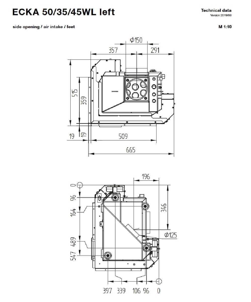 Габаритные размеры Каминная топка ECKA 50/35/45Wh