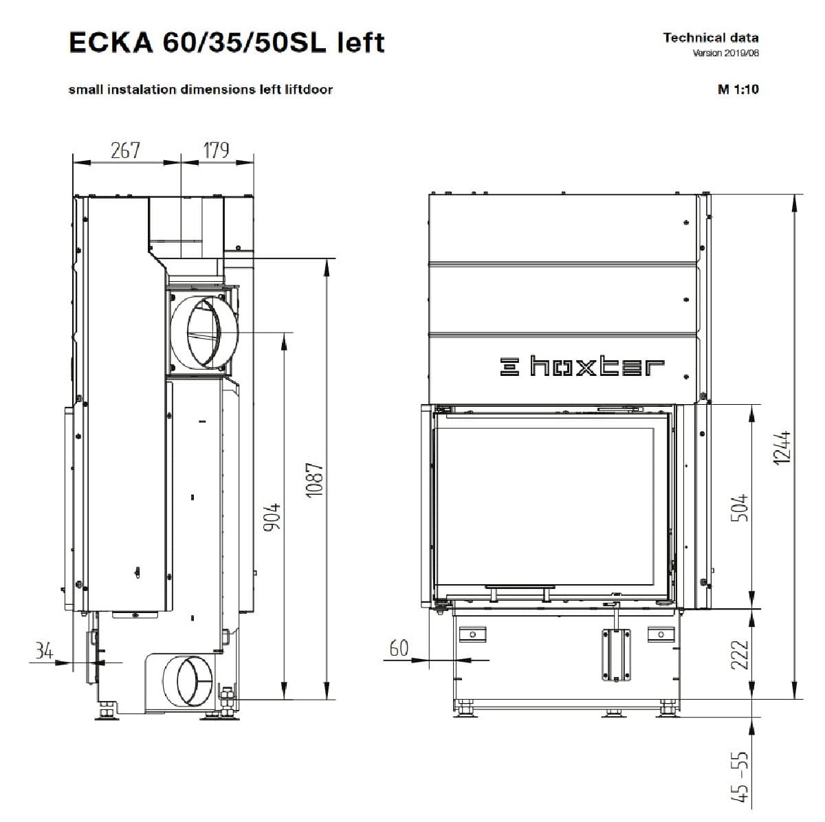Каминная топка Hoxter ECKA 60/35/50SLh Левосторонняя - стальная каминная топка с угловым остеклением и с топкой уменьшенной глубины. Открывание дверцы вверх.