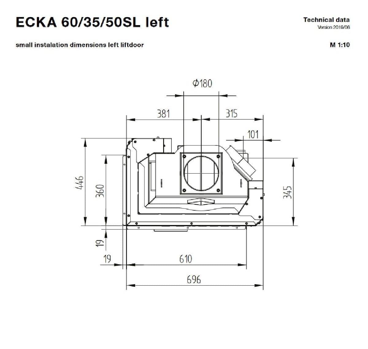 Габаритные размеры Каминная топка ECKA 60/35/50SLh Левосторонняя