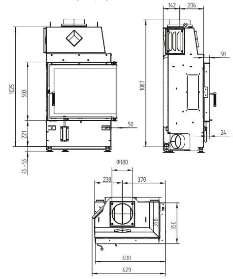 Видимые размеры (размеры дверцы установленной топки): 600x503 мм