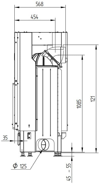 Габаритные размеры Каминная топка ECKA 67/45/51Lh Левосторонняя