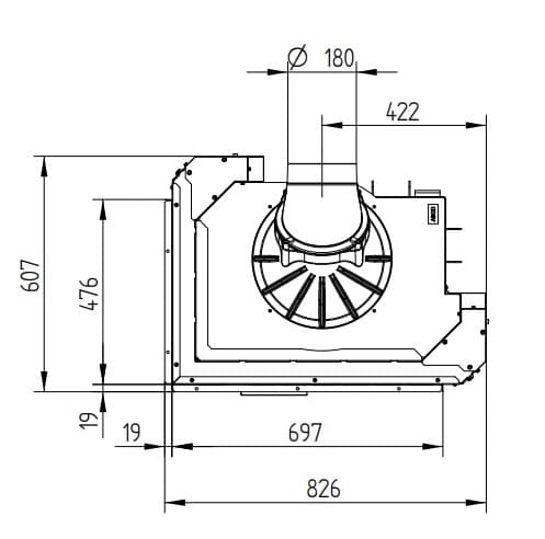 Видимые размеры (размеры дверцы установленной топки): 697x515 мм