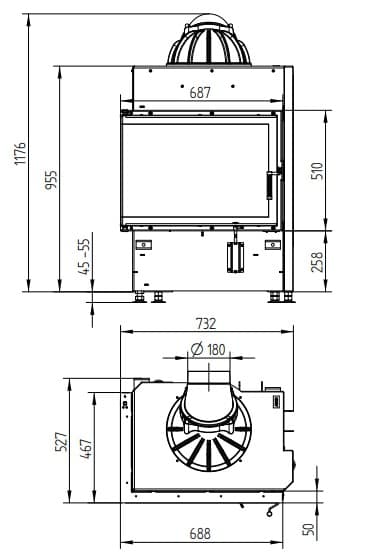Видимые размеры (размеры дверцы установленной топки): 688x510 мм