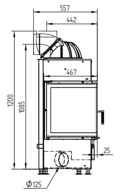 Габаритные размеры Каминная топка ECKA 67/45/51R Правосторонняя