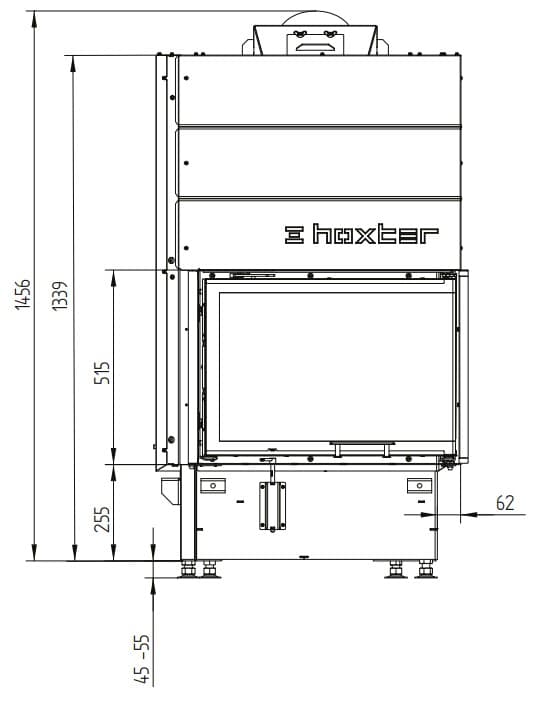 Каминная топка HoxterKA 67/45/51Rh Правосторонняя - стальная каминная топка с угловым остеклением.
