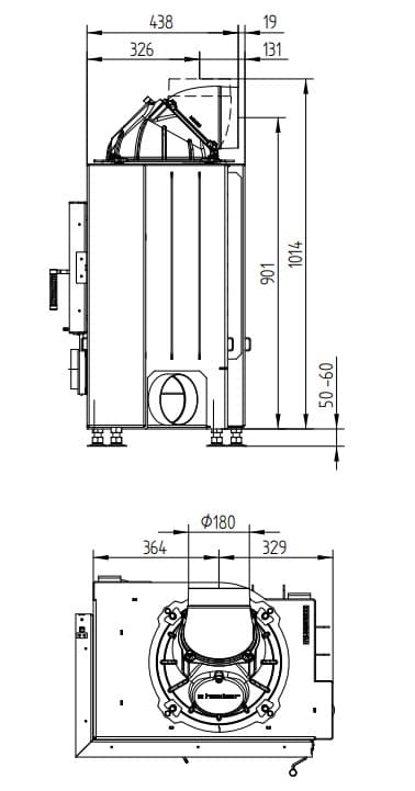 Габаритные размеры Каминная топка ECKA 70/40/38L Левосторонняя