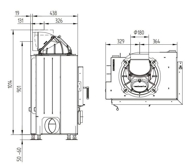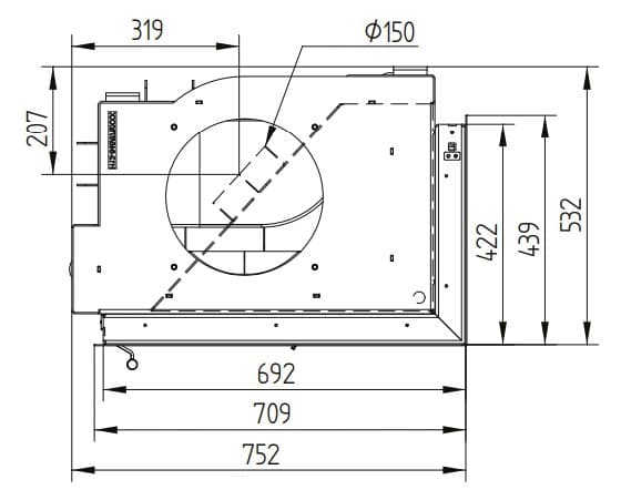 Габаритные размеры Каминная топка ECKA 70/40/38RN Правосторонняя