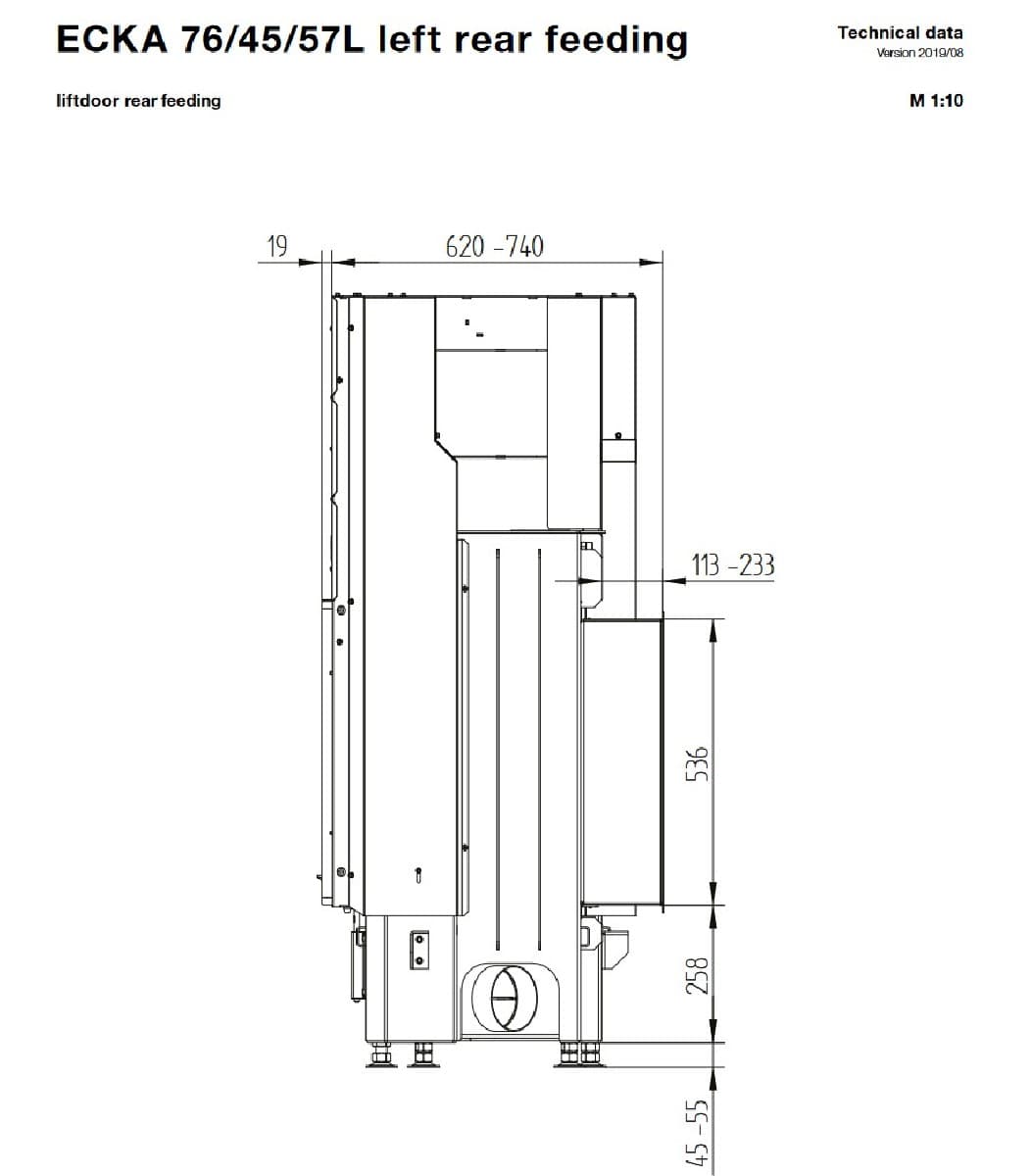 Габаритные размеры Каминная топка ECKA 76/45/57ha