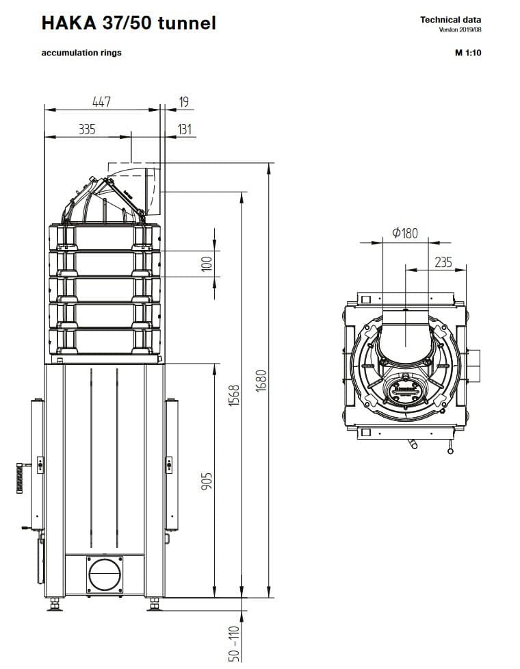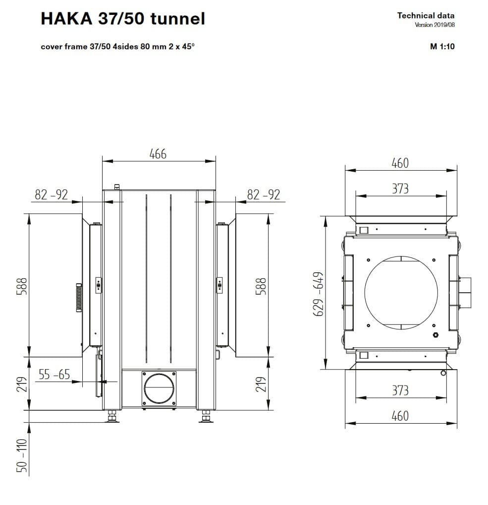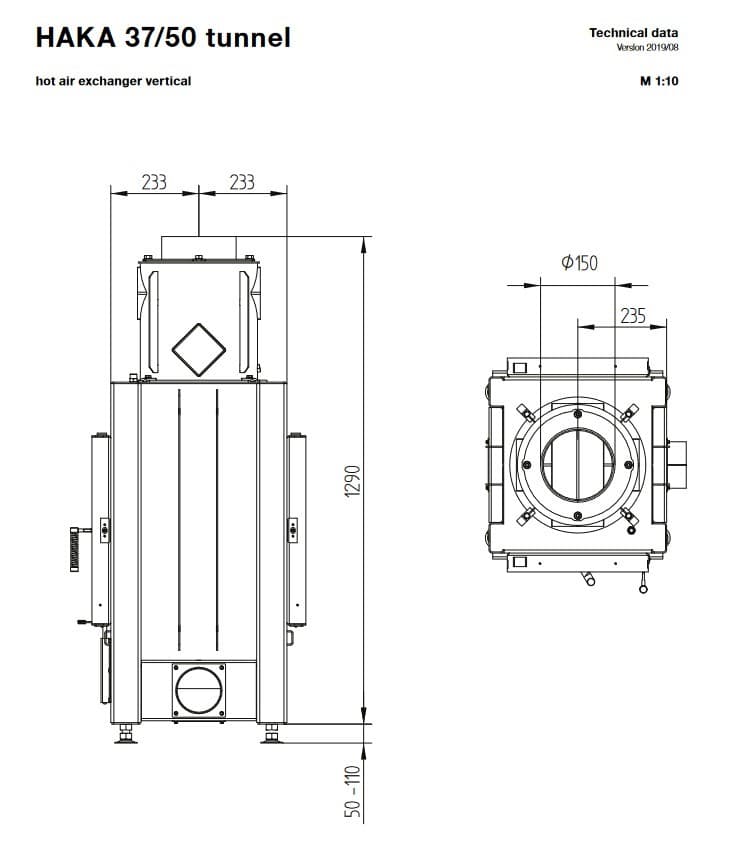 Габаритные размеры Каминная топка Hoxter HAKA 37/50T