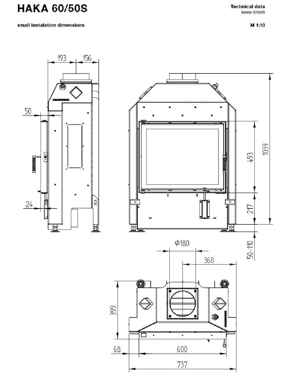 Габаритные размеры Каминная топка HAKA 60/50S