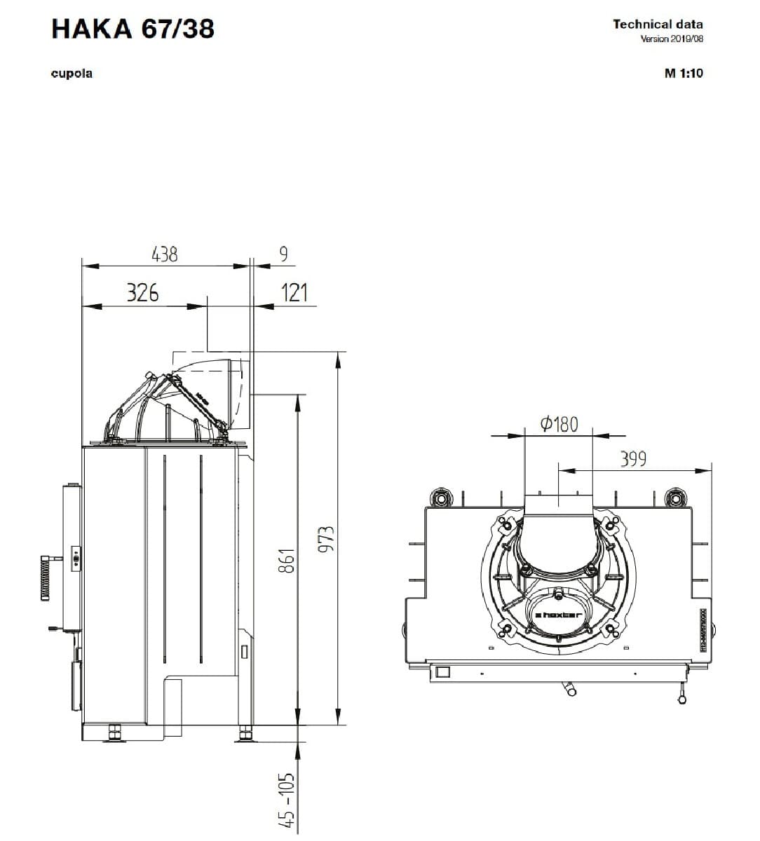 Габаритные размеры Каминная топка HAKA 67/38(N)