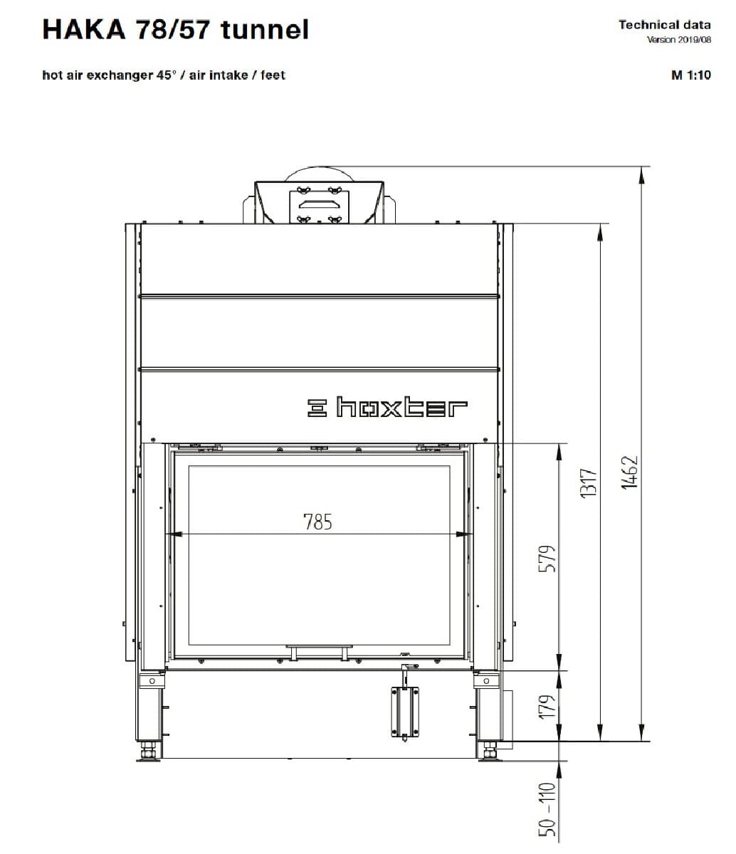 Габаритные размеры Каминная топка HAKA 78/57Th