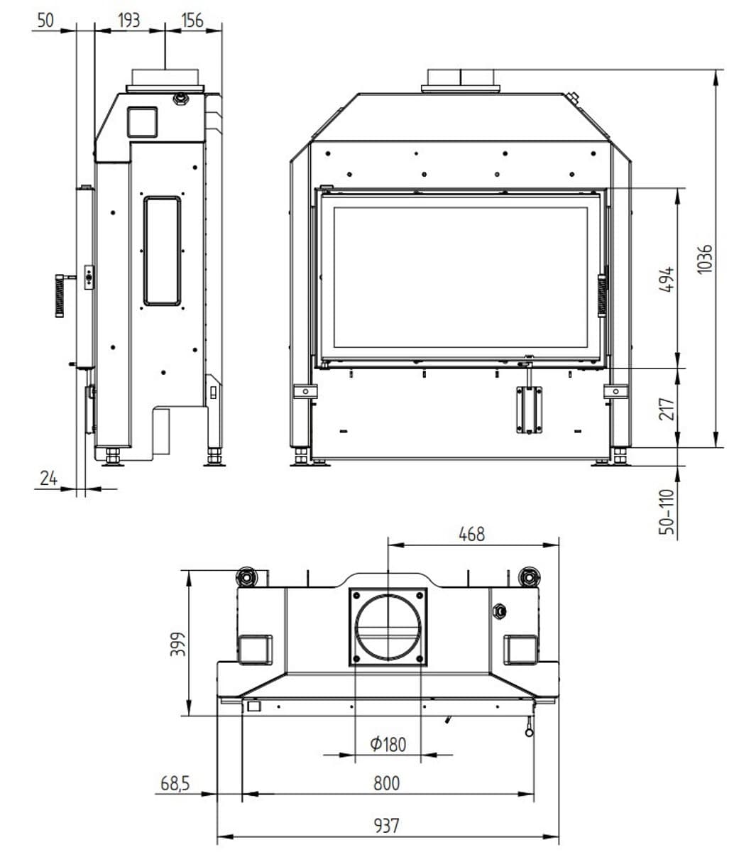 Каминная топка изготовлена из стали, изделие можно использовать длясоздания теплоемких облицовок, также имеется возможность подключениясистемы управления горением.