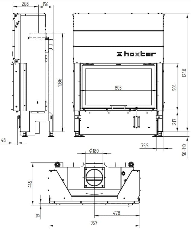 Габаритные размеры каминной топки HAKA 80/50Sh