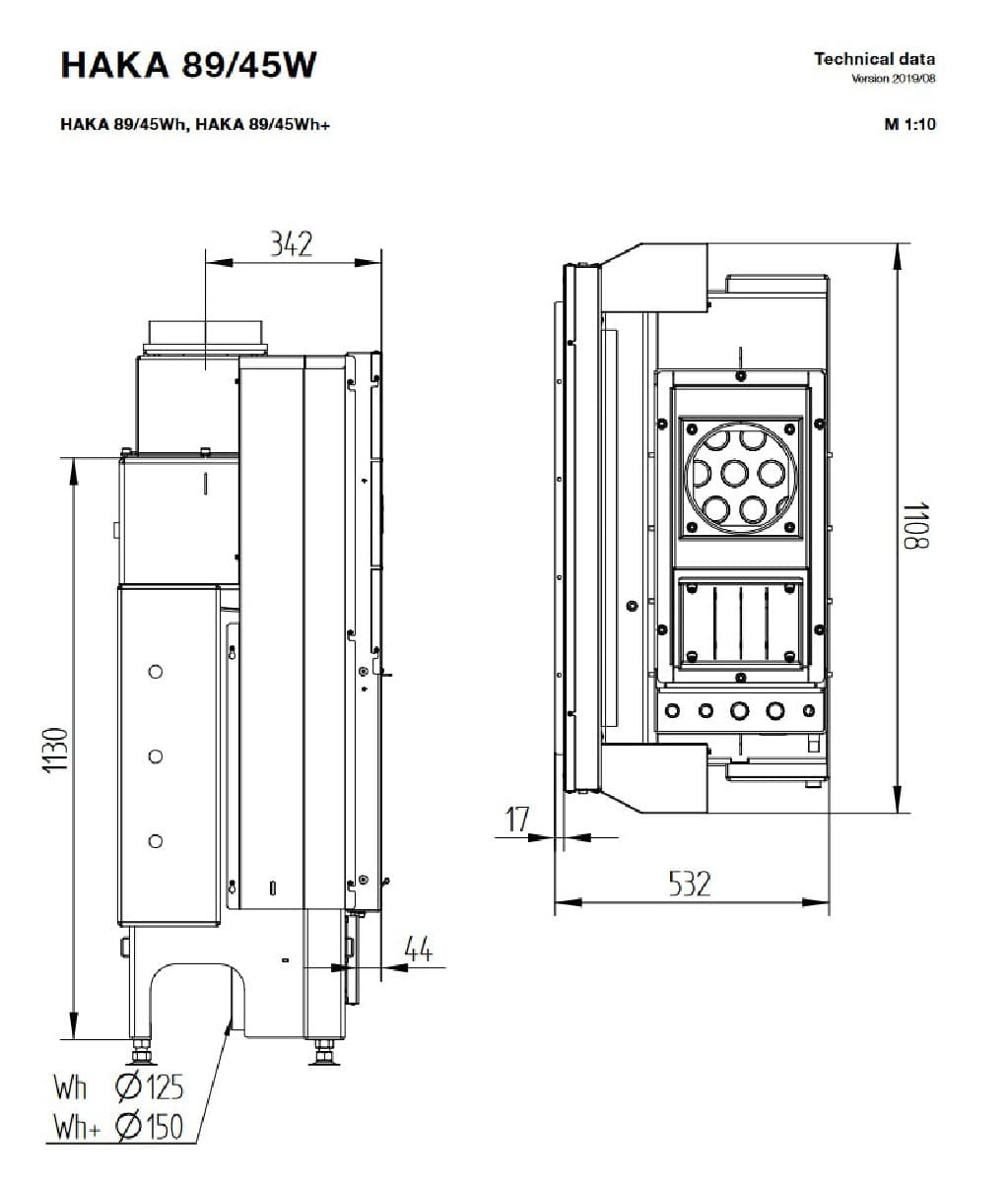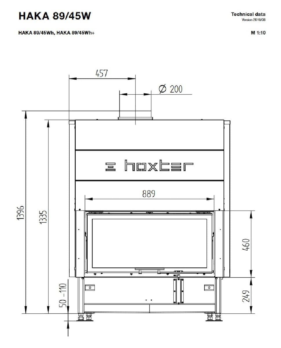 Габаритные размеры Каминная топка HAKA 89/45Wh