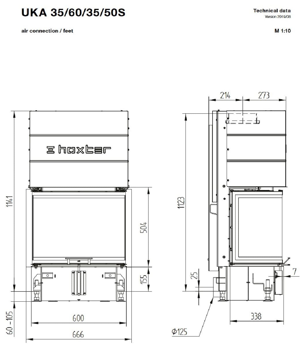 Габаритные размеры Каминная топка UKA 35/60/35/50Sh