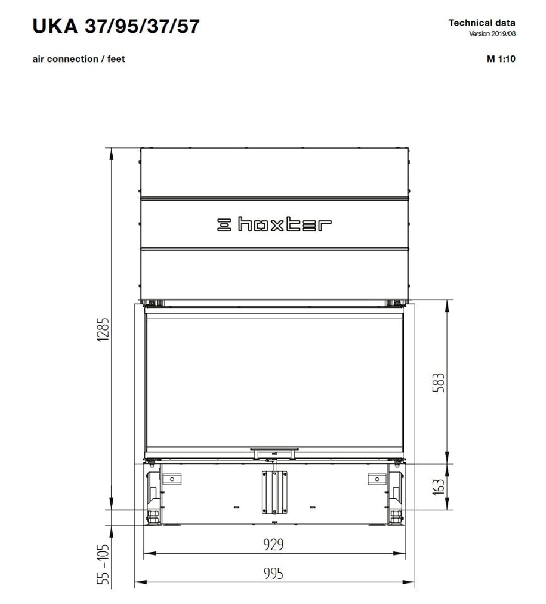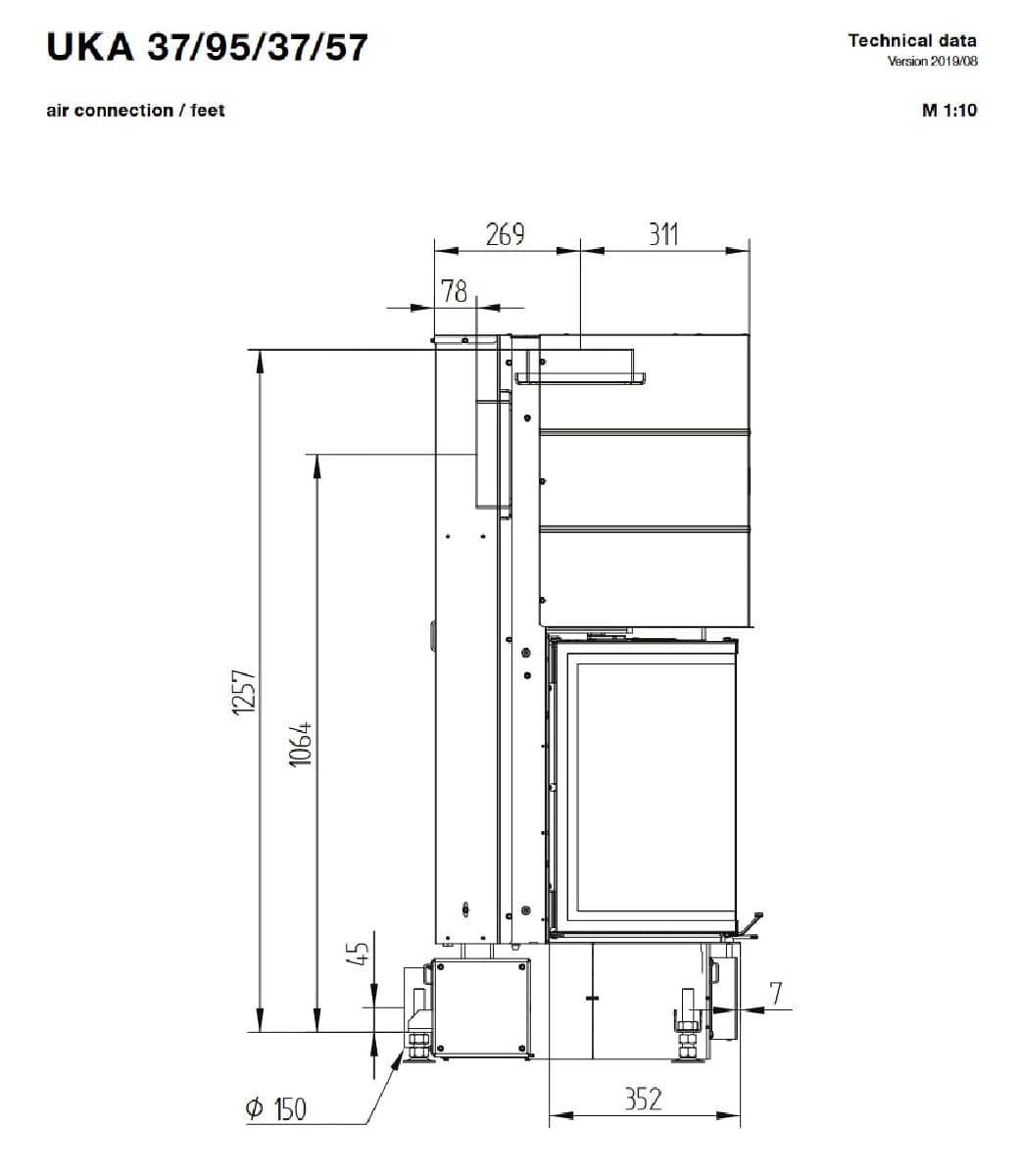 Габаритные размеры Каминная топка UKA 37/95/37/57h
