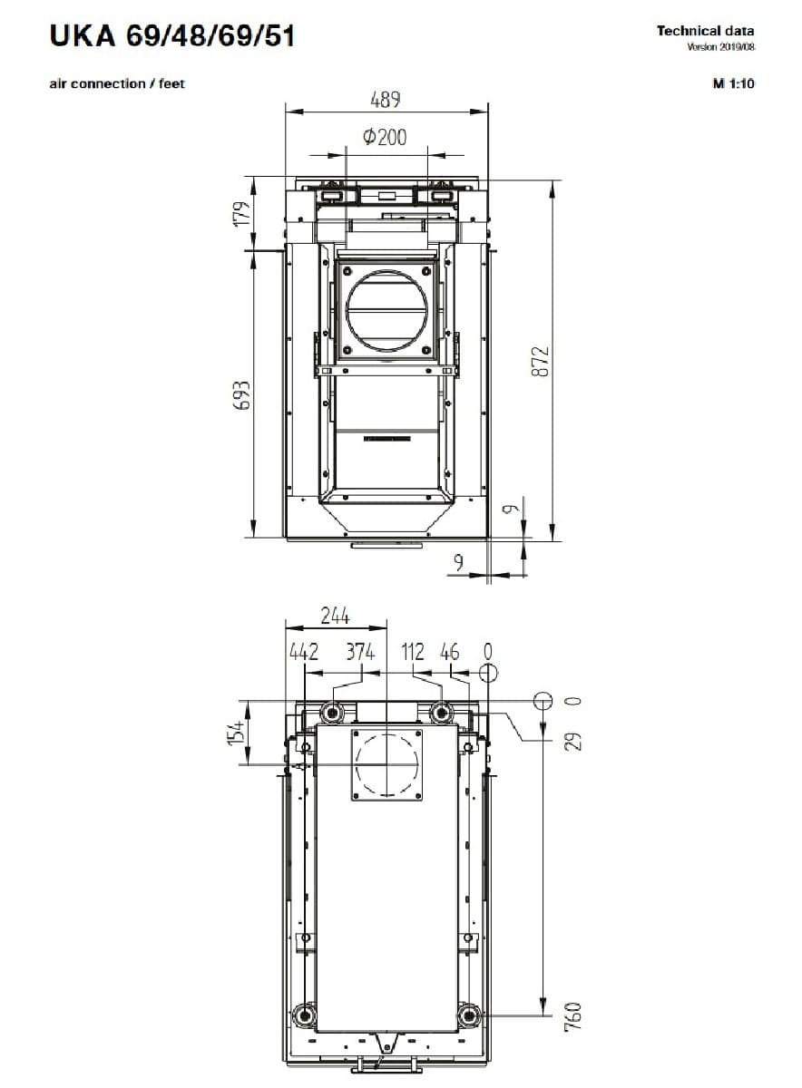 Габаритные размеры Каминная топка UKA 69/48/69/51h