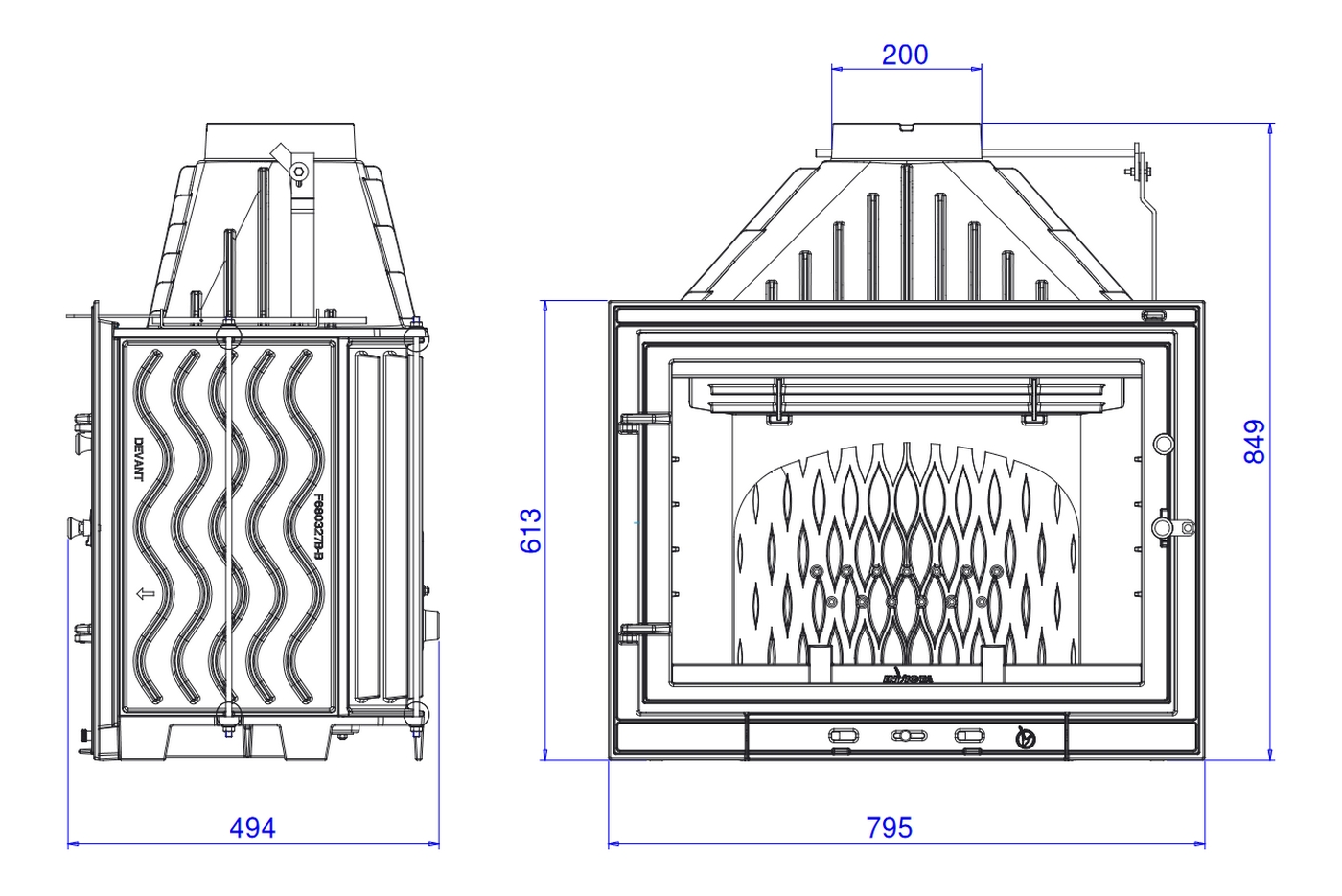 | Диаметр дымохода | 200 мм |
