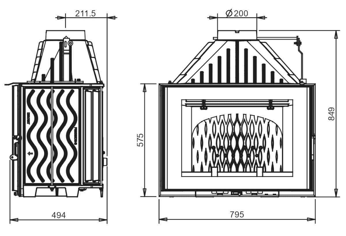 Модель оборудована дымосборником и шиберной заслонкой. Стекло составное декорированное черной фабричной тонировкой по краю - шелкографией. Задняя стенка у угловой чугунной топки Invicta 700 двойная с отверстиями для подачи воздуха на вторичный дожиг.