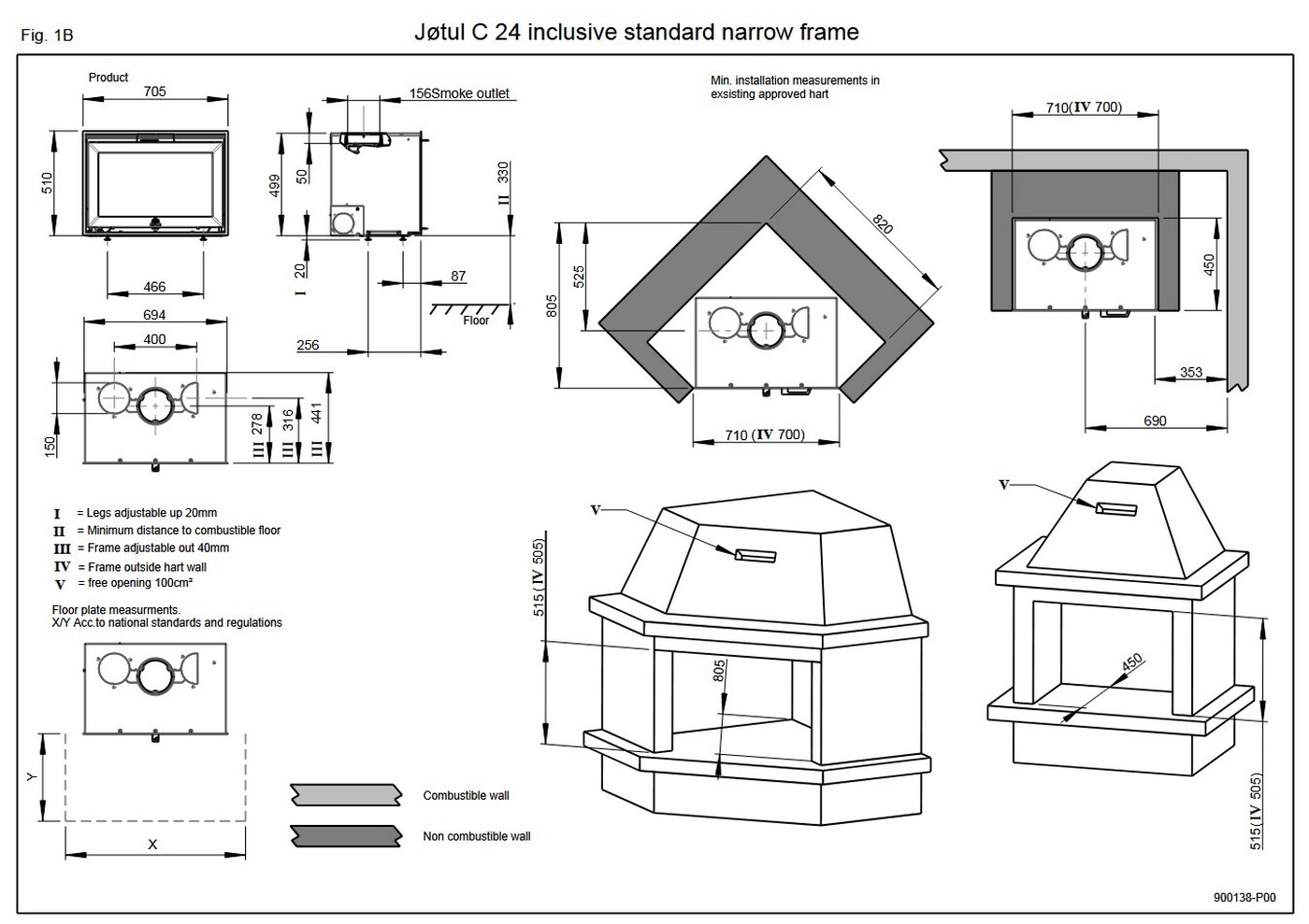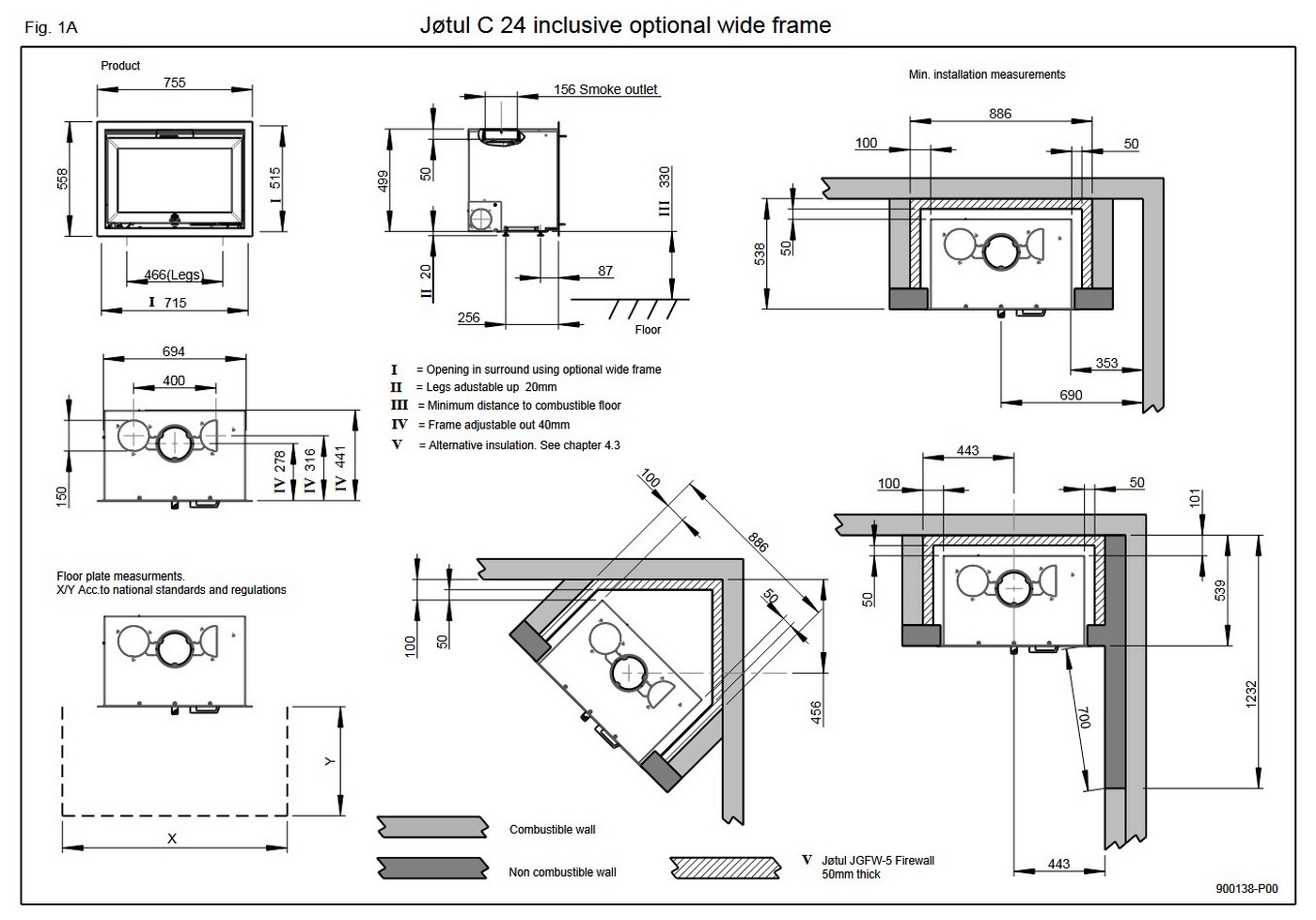 Каминная кассета Jotul C 24 - с функциейчистое горение “Clean Burn”, обеспечивает мощность при среднем уровнегорения 7 кВт, рассчитана на отопления помещений до 140 м2.
