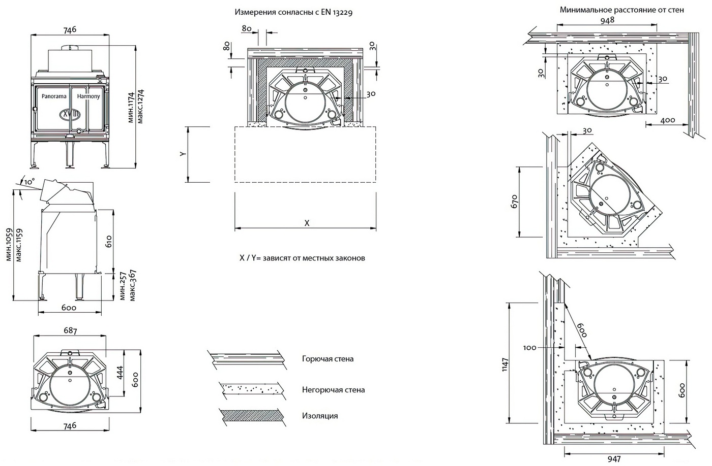 | Вариант подключения дымохода | верхнее, заднее |