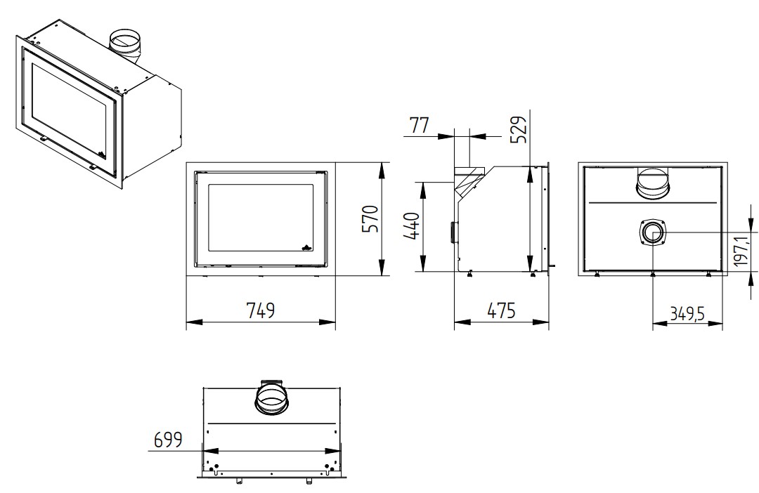 Чертеж каминной топки Jydepejsen H530 Modern: