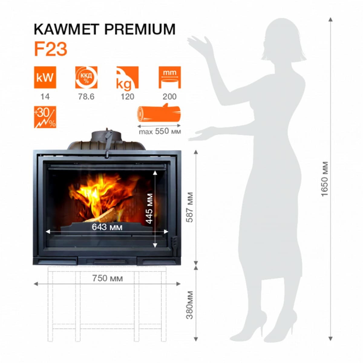 Каминная топка KAWMET Premium F23 14кВт - отопительный прибор польского завода KAWMET премиум класса.