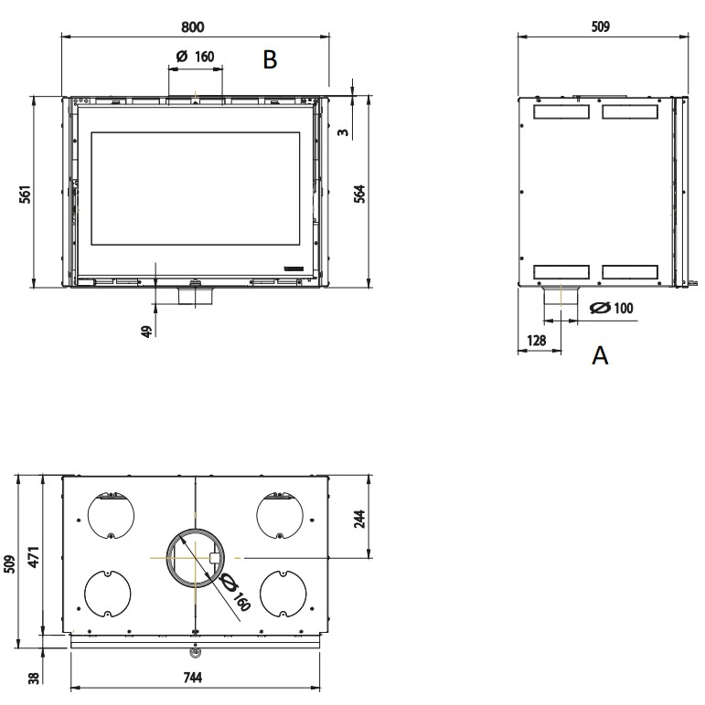 | Диаметр дымового патрубка | 160 мм |