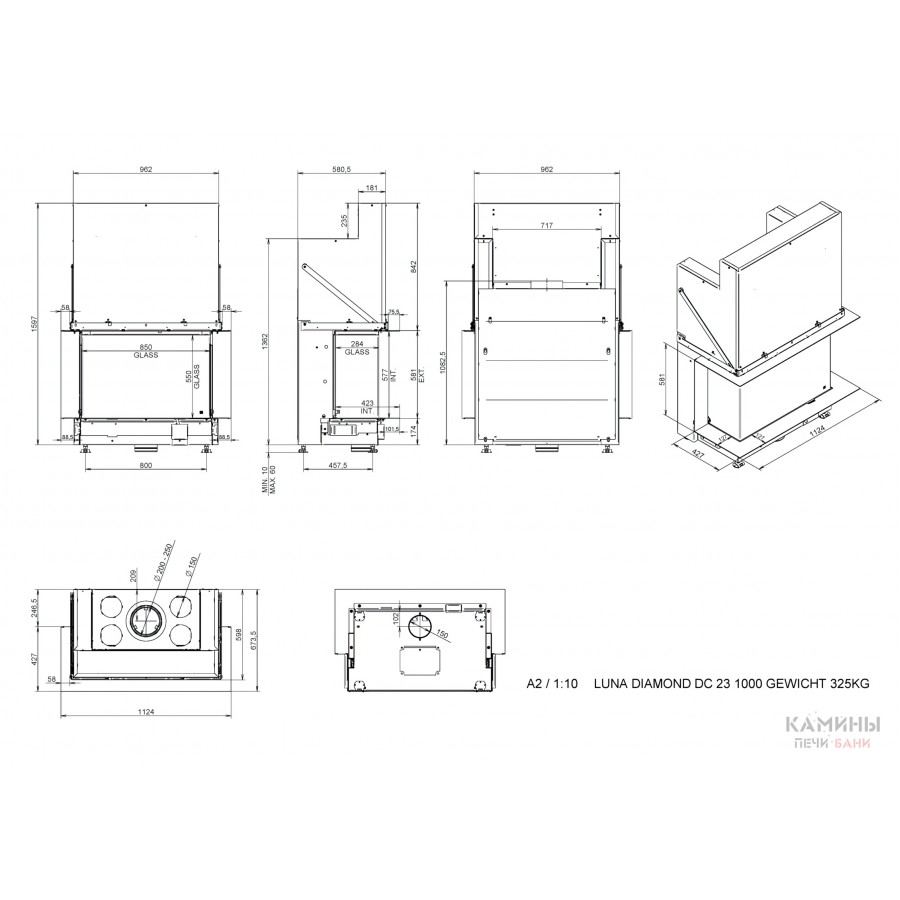 Купить дровяную каминную топку Luna 1000 DC Diamond для вашего дома