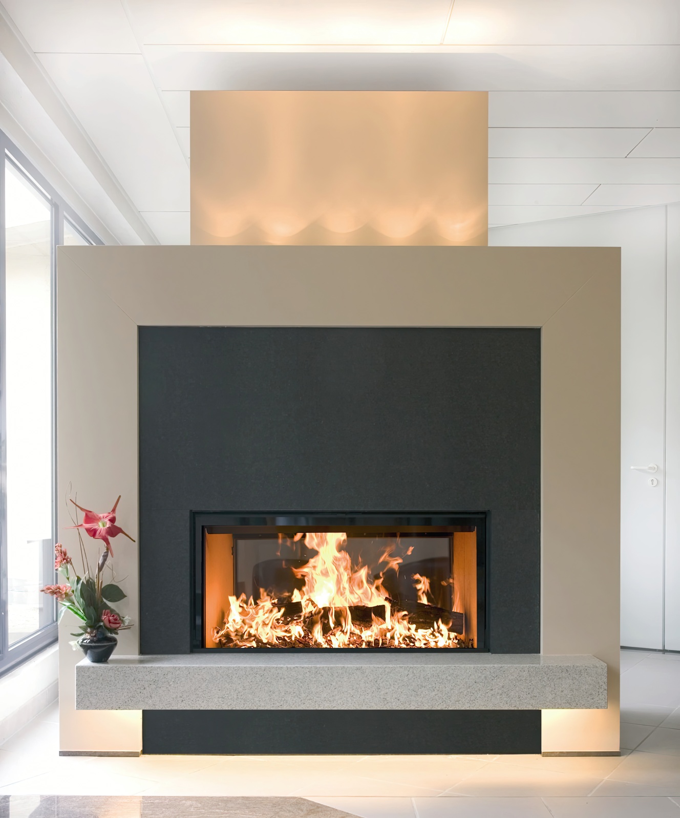Решение купить дровяной камин серии Diamond Plus — это выбор в пользу безупречной эстетики. В конструкции практически отсутствуют видимые металлические рамки, что создает эффект «чистого огня», встроенного прямо в стену. Инновационный подъемный механизм дверцы (гильотина) работает бесшумно и плавно, позволяя легко переключаться между закрытым и открытым режимом камина.