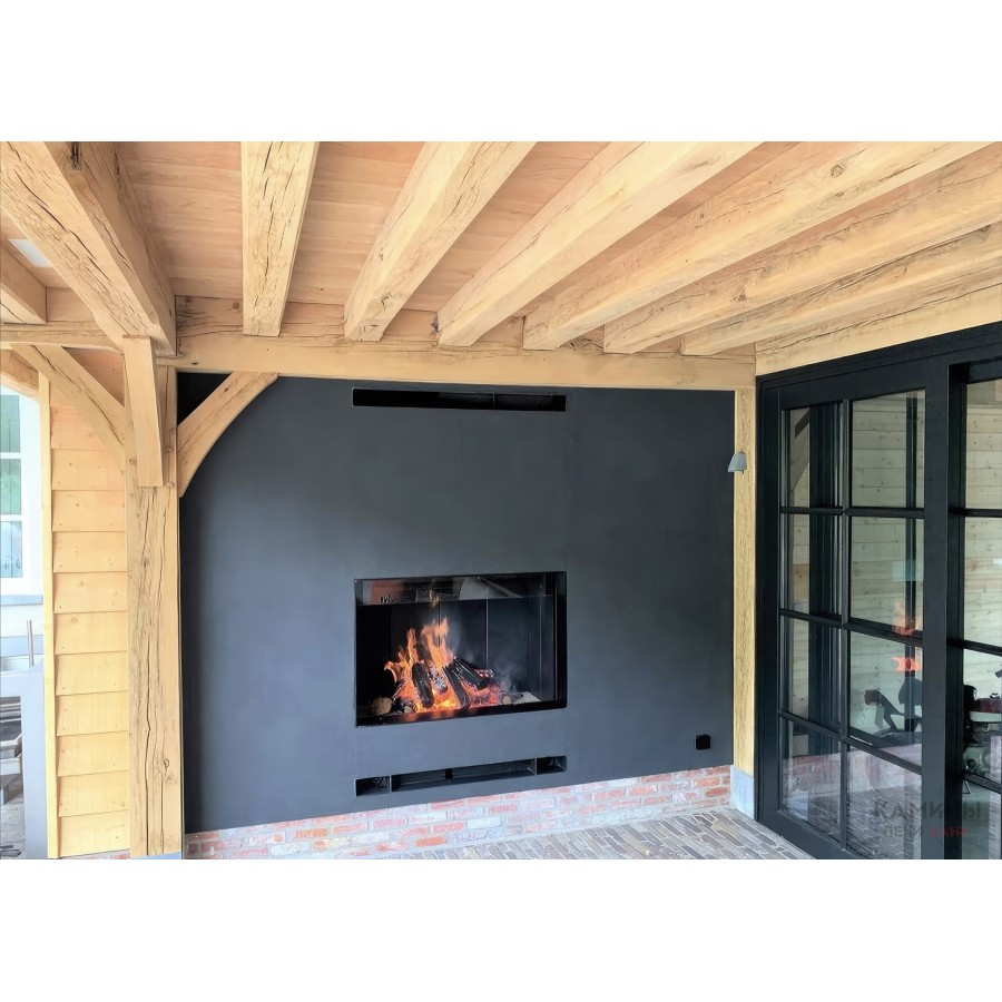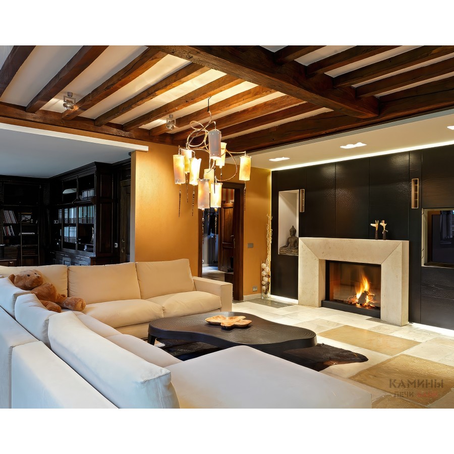 Стиль Pure Face: Минималистичный дизайн без видимых металлических рамок позволяет камину выглядеть как открытый арт-объект.