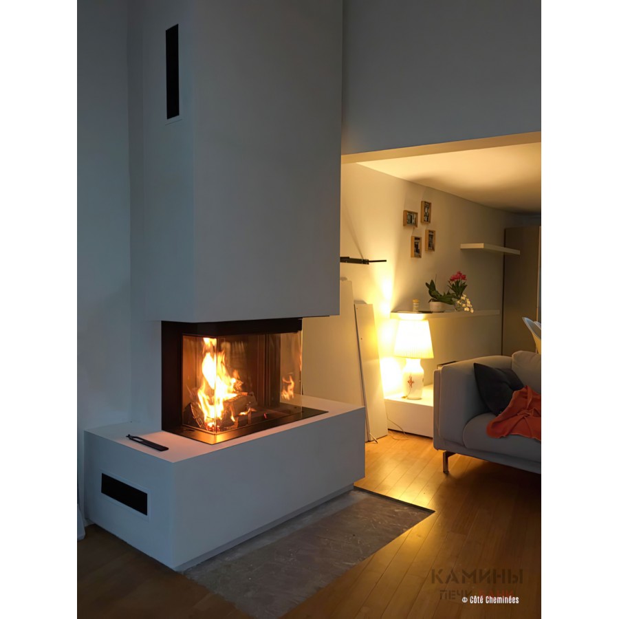 Дровяная каминная топка M-Design Luna 800 DC Diamond — это изысканное решение для углового размещения, которое открывает панорамный обзор пламени с двух сторон. Модель DC (Diamond Corner) позволяет наслаждаться игрой огня из любой точки помещения. Благодаря отсутствию широких металлических стоек на стыке стекол, создается эффект непрерывного и легкого остекления, что идеально подходит для современных интерьеров.