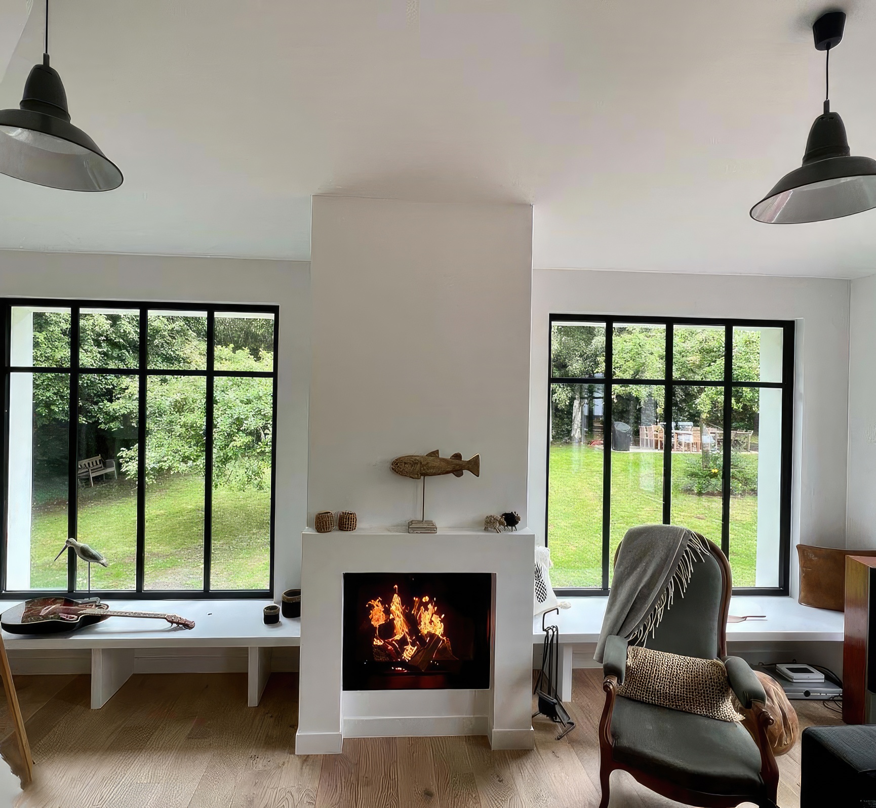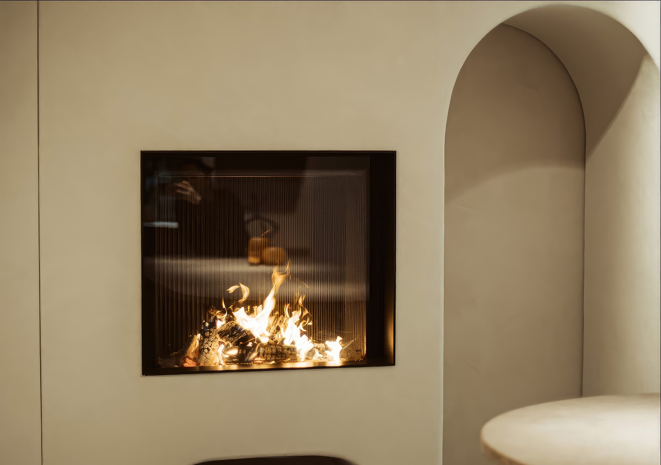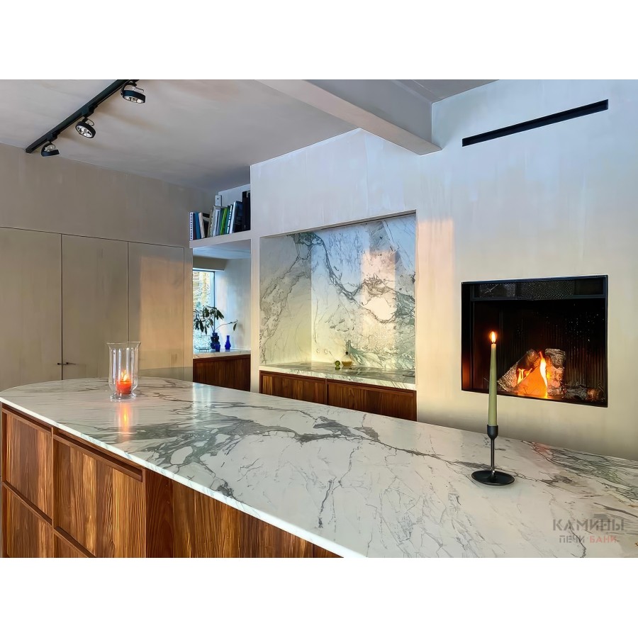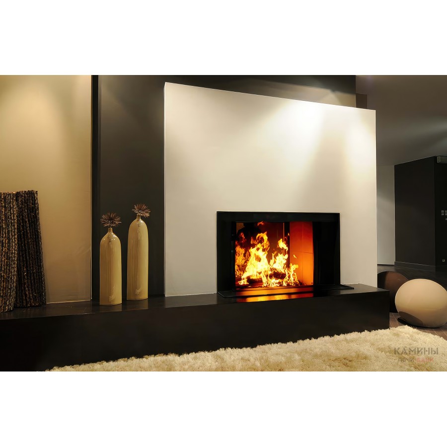 Эстетика Pure Face: Безрамочная конструкция позволяет интегрировать топку в стену так, что видимым остается только стекло и живое пламя.